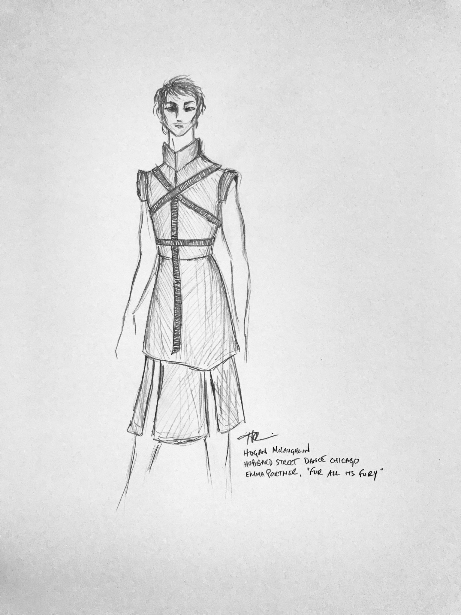 Costume sketch by Hogan McLaughlin for For All It's Fury by Emma Porter.